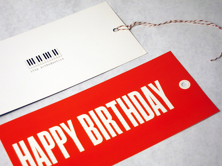 We created this “Happy Birthday” card for CTNP Orthodontics. They attached this card to a gift (a t-shirt, a tote bag or an umbrella), which they offer to their patients on their birthday.