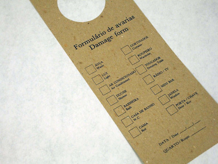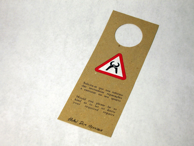 Hotel Dom Henrique hired NMH to create this “required repairs” hang tag. Guests hang this tag on their room doorknobs if they need any repairs to be done.